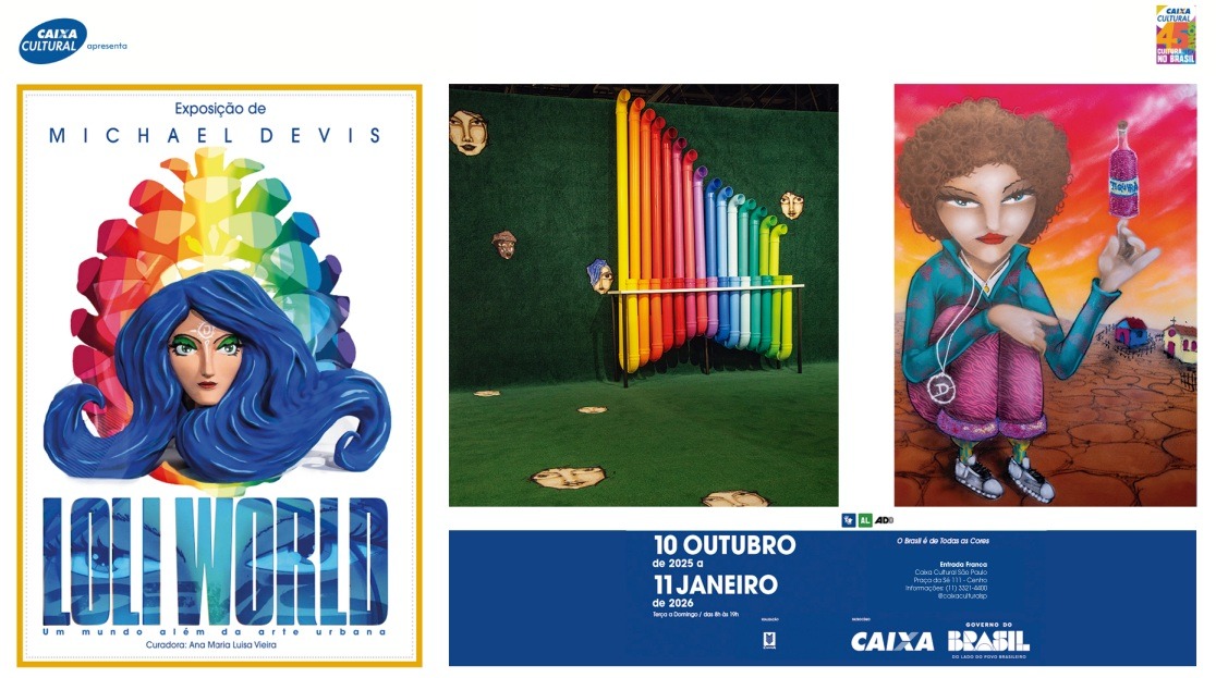 De 10 de outubro de 2025 a 11 de janeiro de 2026, a CAIXA Cultural São Paulo recebe a exposição “Loli World – Um mundo além da Arte Urbana”, do artista curitibano Michael Devis. Com curadoria de Ana Maria Luisa Vieira e realização da Cápsula Graffiti, o projeto — que conta com patrocínio da CAIXA e do Governo Federal tem entrada franca e convida o público a viver uma experiência sensorial, lúdica e acessível por meio de 25 obras recentes do artista.