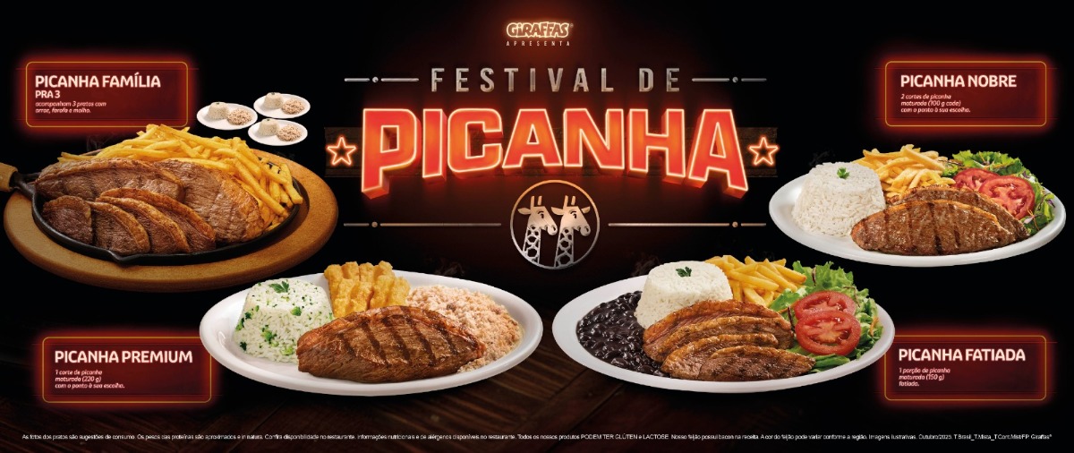 O Festival de Picanha estará disponível em todas as unidades participantes, com valores que variam de acordo com a localidade, reforçando a experiência do Giraffas com a tradição da picanha.