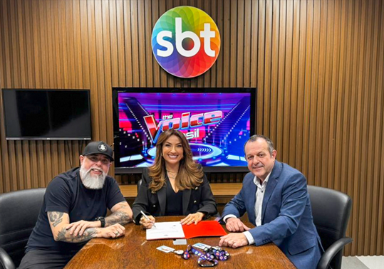 A assinatura do contrato foi celebrada ao lado do diretor do programa, Márcio Esquilo, e de Mauro Lissoni, diretor de Programação e Artístico do SBT.