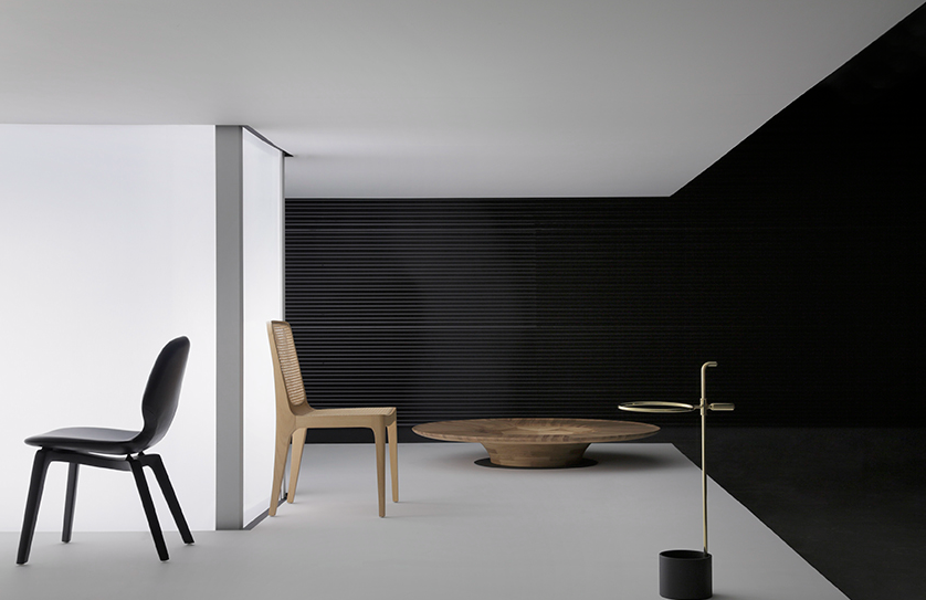 A cadeira Clad evoca a arte antiga, com linhas que fluem como desenhos no ar, sustentando o corpo e revelando a poesia da madeira. A mesa Twist, arredondada e de centro vazado, parece dançar com o chão, criando um gesto leve em qualquer ambiente. A poltrona Dora acolhe quem se senta com suavidade imediata, equilibrando a precisão das linhas retas com a delicadeza das curvas. Já a Joy envolve como um abraço: concha que une conforto e escultura, forma e memória.