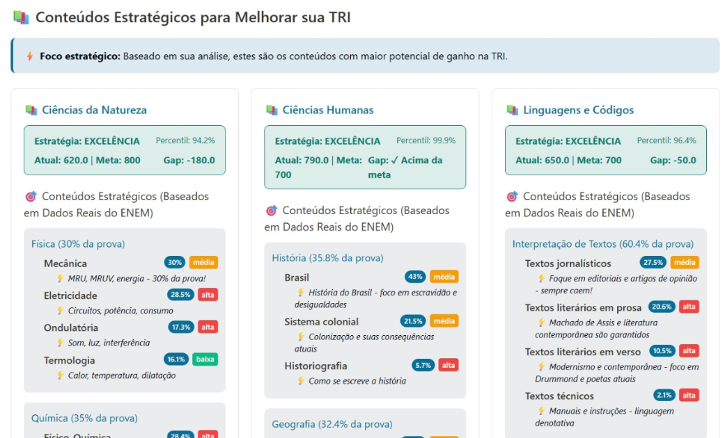 A plataforma surge como resposta a uma demanda crescente entre gestores e coordenadores: compreender de forma aprofundada a nota TRI, métrica que avalia a coerência e o nível de dificuldade das questões do ENEM. Até hoje, muitos colégios aplicavam simulados sem conseguir extrair informações que orientassem decisões pedagógicas estratégicas. Com a nova tecnologia, esse cenário muda radicalmente.
